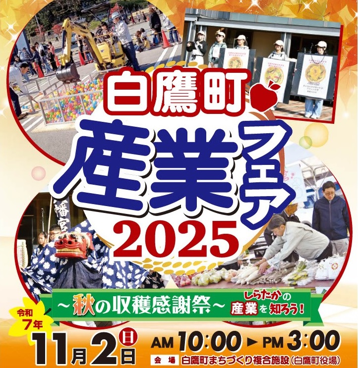 Shirataka Industrial fair 2025 豊穣の秋! 豊かな実りに感謝、地元産の野菜や果物の収穫を祝い、生産現場で頑張っているみなさんを応援し、「白鷹産」の消費拡大を図ることを目的として、イベントや食のおもてなしで皆様をお迎えいたします。皆様!是非お立ち寄りください。